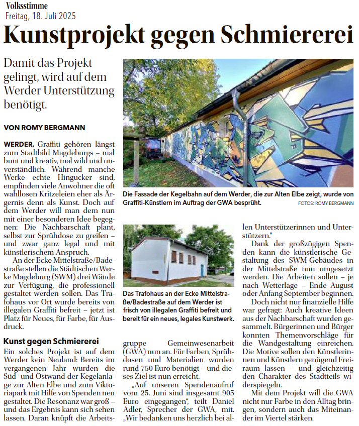 Volksstimme 18.07.2025 - Graffiti-Kunst am Trafo-Haus