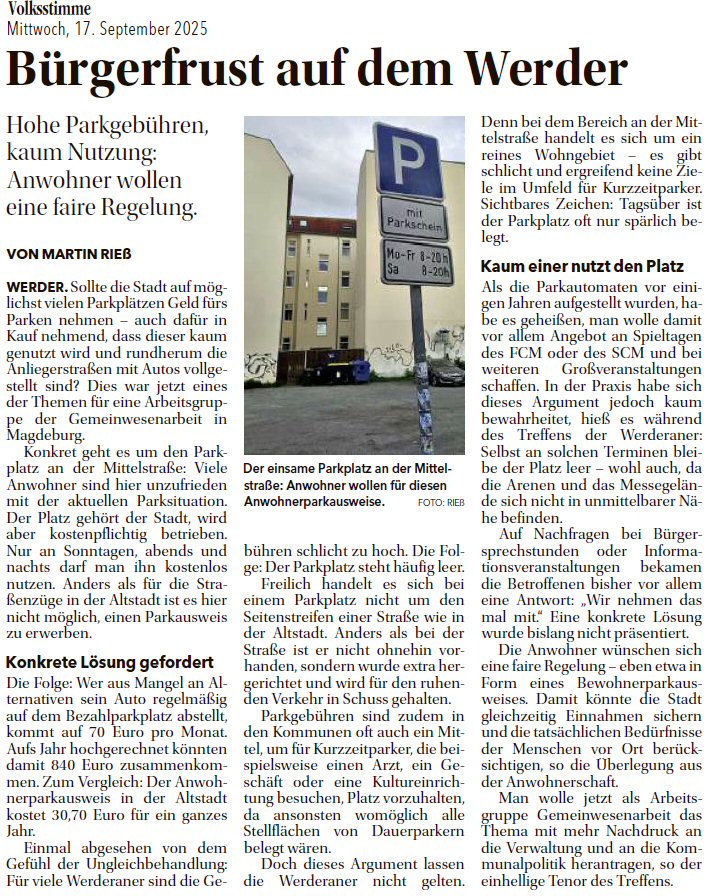 Volksstimme 17.09.2025 - Parkplatz Ecke Lingnerstraße/Mittelstraße