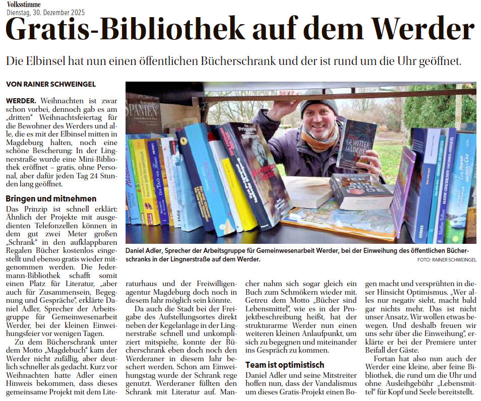 Volksstimme 30.12.2025 - Einweihung Bücherschrank