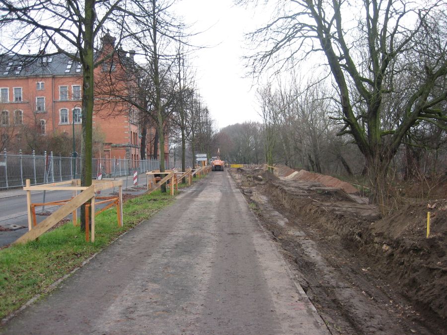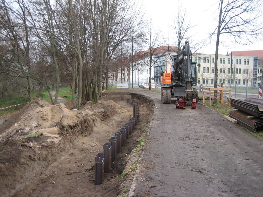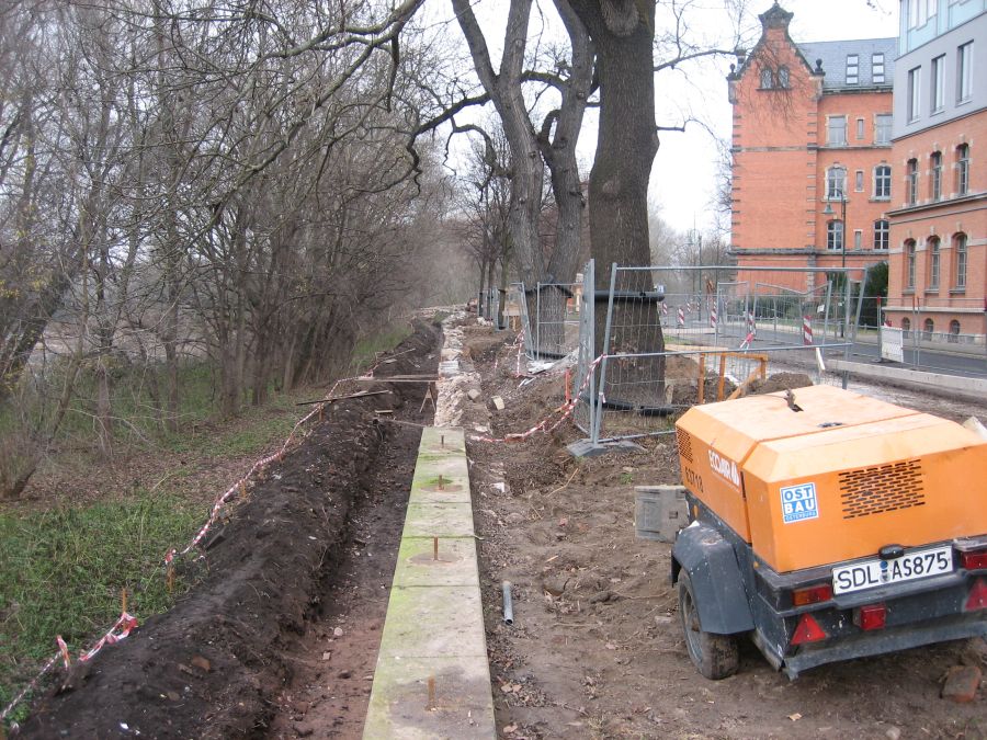 Baufortschritt Hochwasserschutzmauer Turmschanzenstraße
