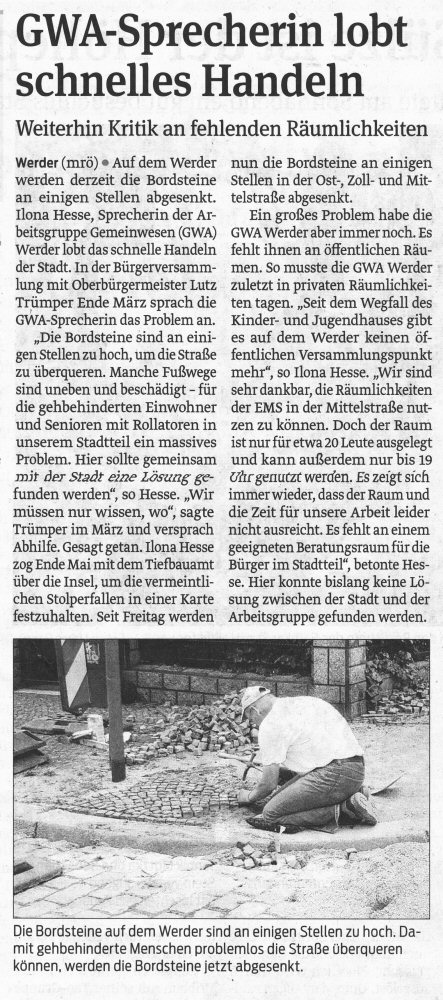Volksstimme 19.06.2012 - Bordsteinabsenkung