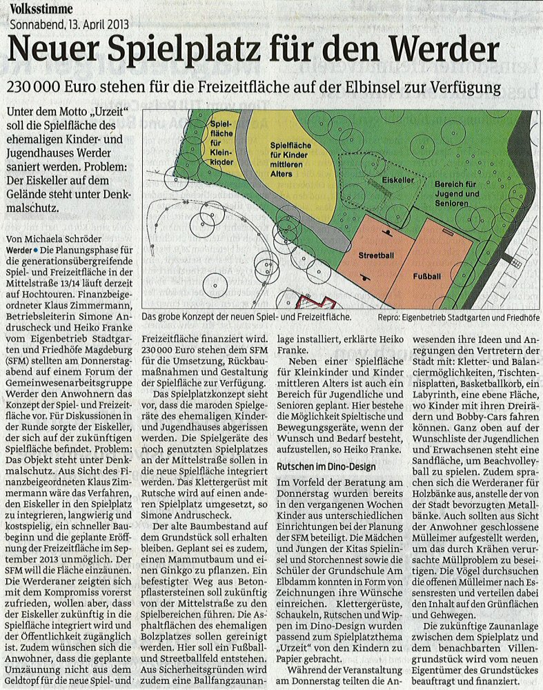 Volksstimme 13.04.2013 - Neuer Spielplatz