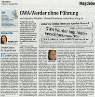 Volksstimme 18.10.2013 - Situation in der GWA Werder