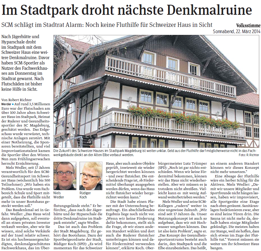 Volksstimme 22.03.2014 - Schweizer Haus wird zur Denkmalruine