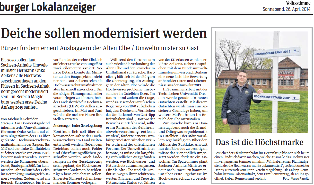 Volksstimme 26.04.2014 - Deichmodernisierung