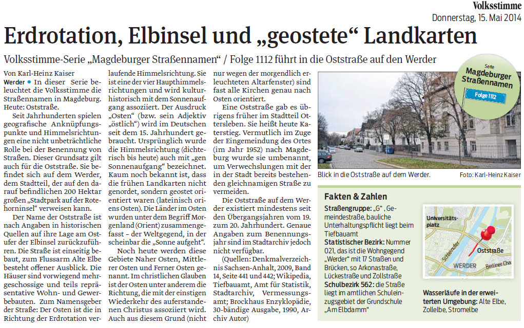 Volksstimme 15.05.2014 - Namensgebung Oststraße