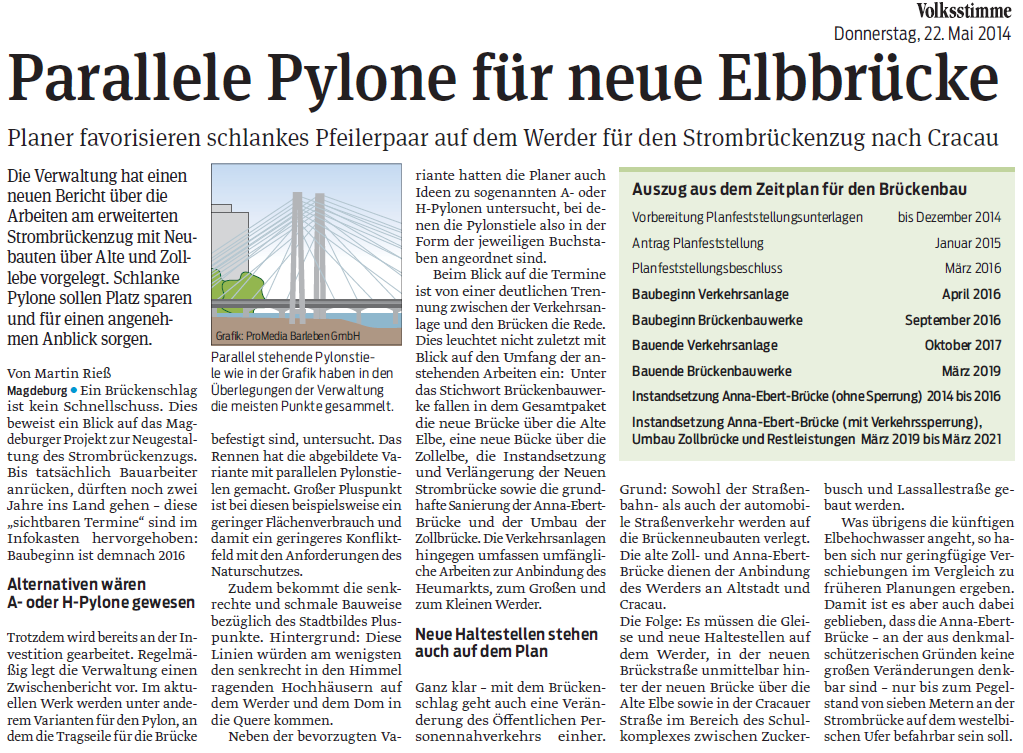 Volksstimme 22.05.2014 - Pylonenbrücke