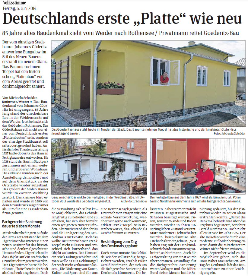 Volksstimme 06.06.2014 - Werder-Bauhaus jetzt in Rothensee