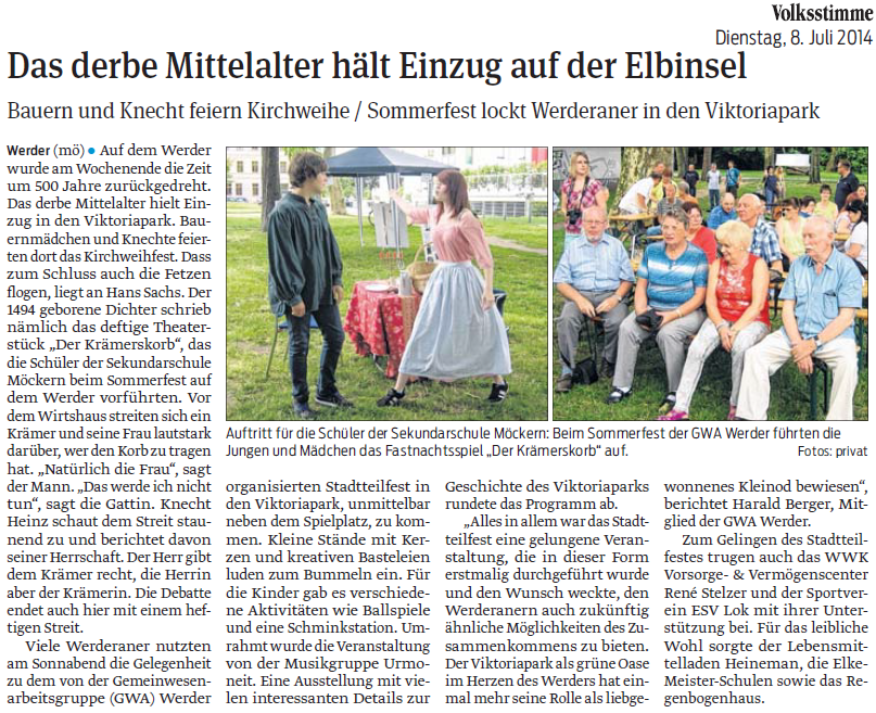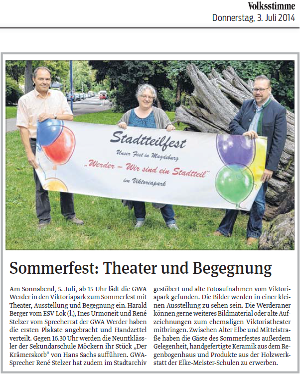 Volksstimme 08.07.2014 - Bericht Stadtteilfest Werder
