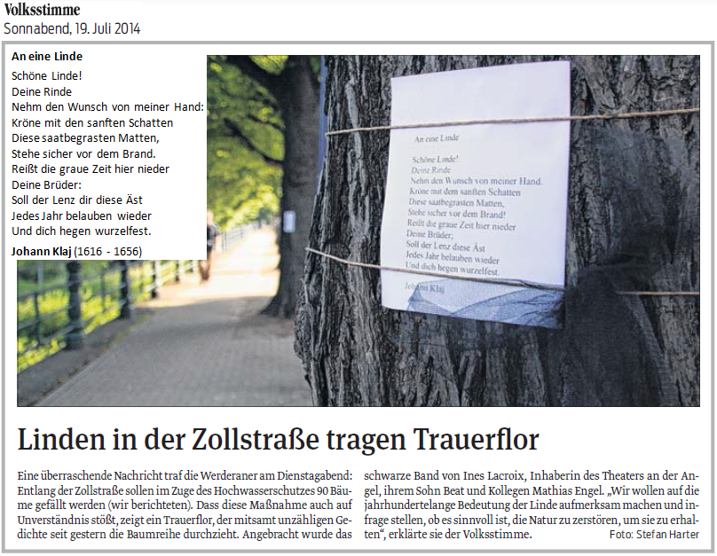Volksstimme 19.07.2014 - Trauer um Linden in der Zollstraße