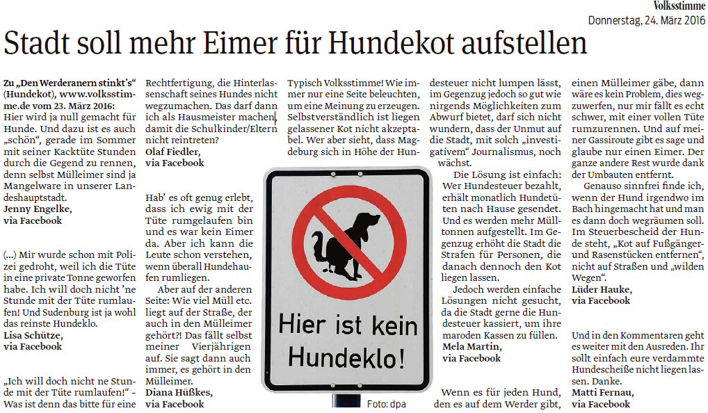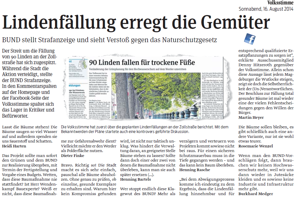 Volksstimme 16.08.2014 - Bürgerstimmen zur Lindenfällung