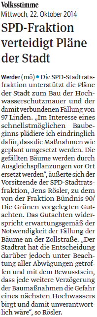 Volksstimme 15.10.2014 - Baumgutachten für Werder-Linden
