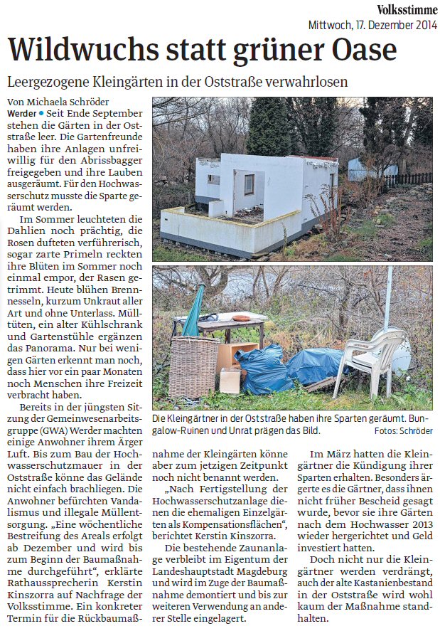 Volksstimme 17.12.2014 - Verwaiste Gärten in der Oststraße