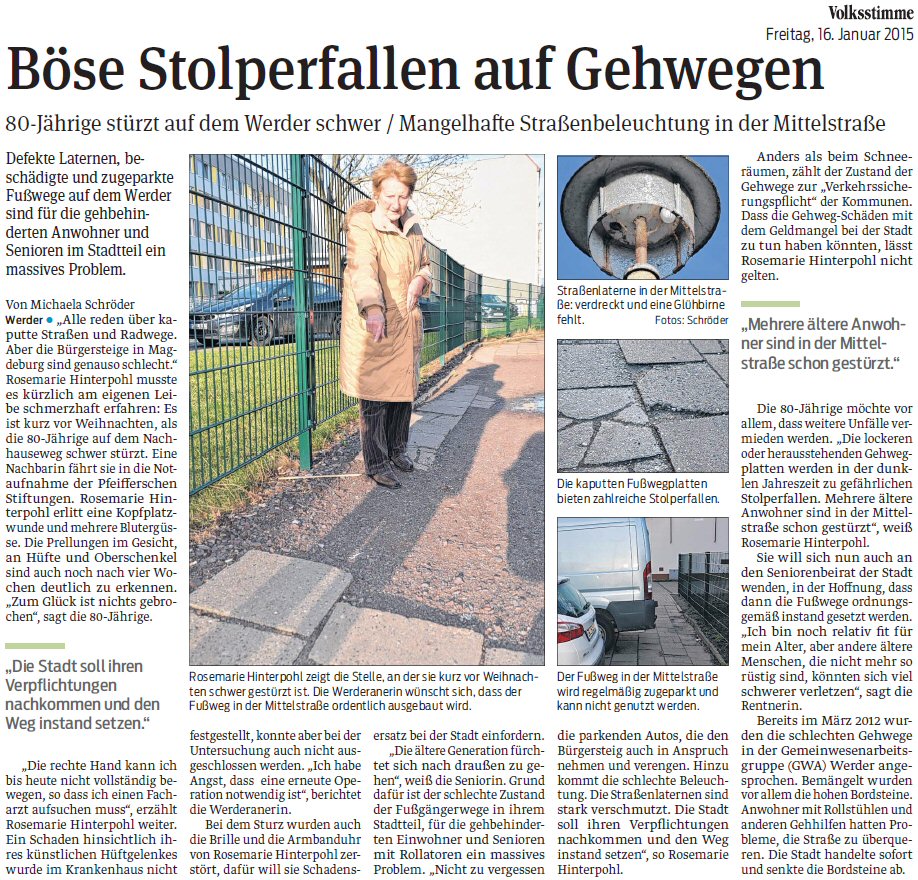 Volksstimme 16.01.2015 - Gehwegschaden Mittelstraße