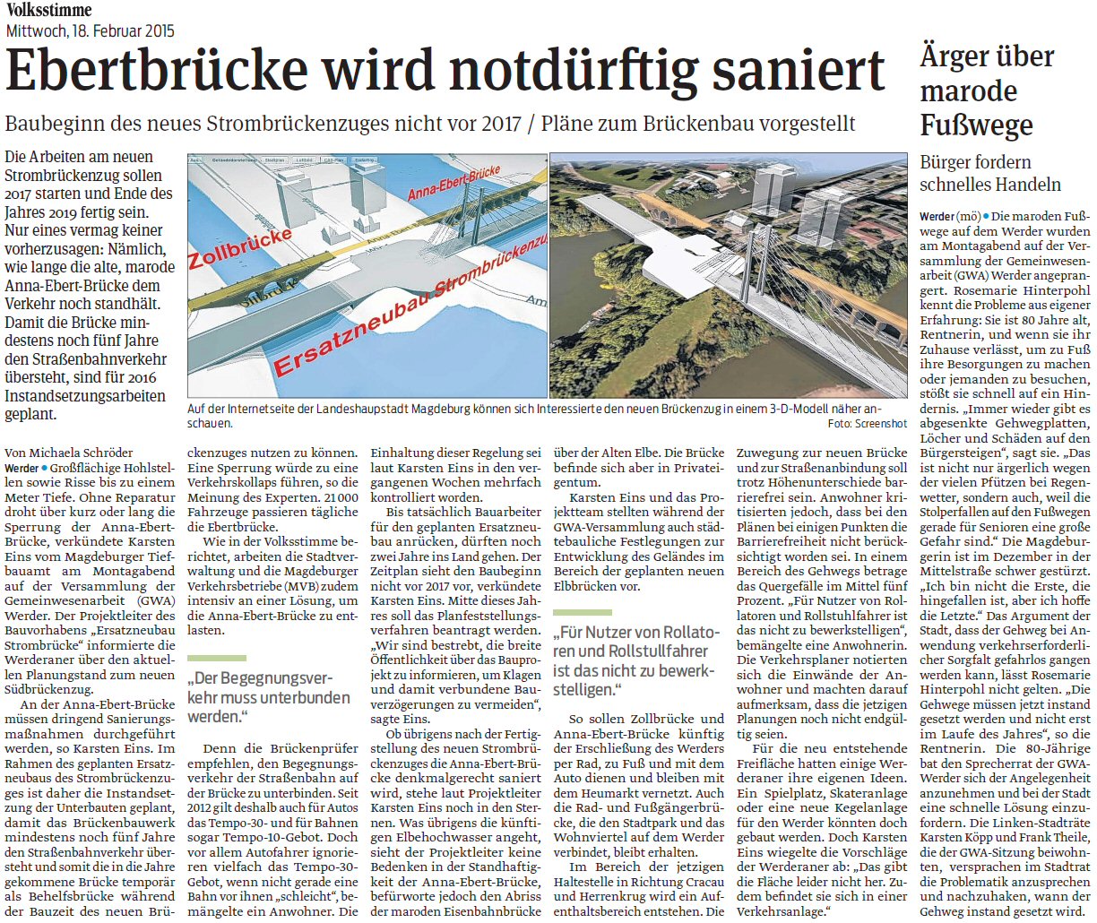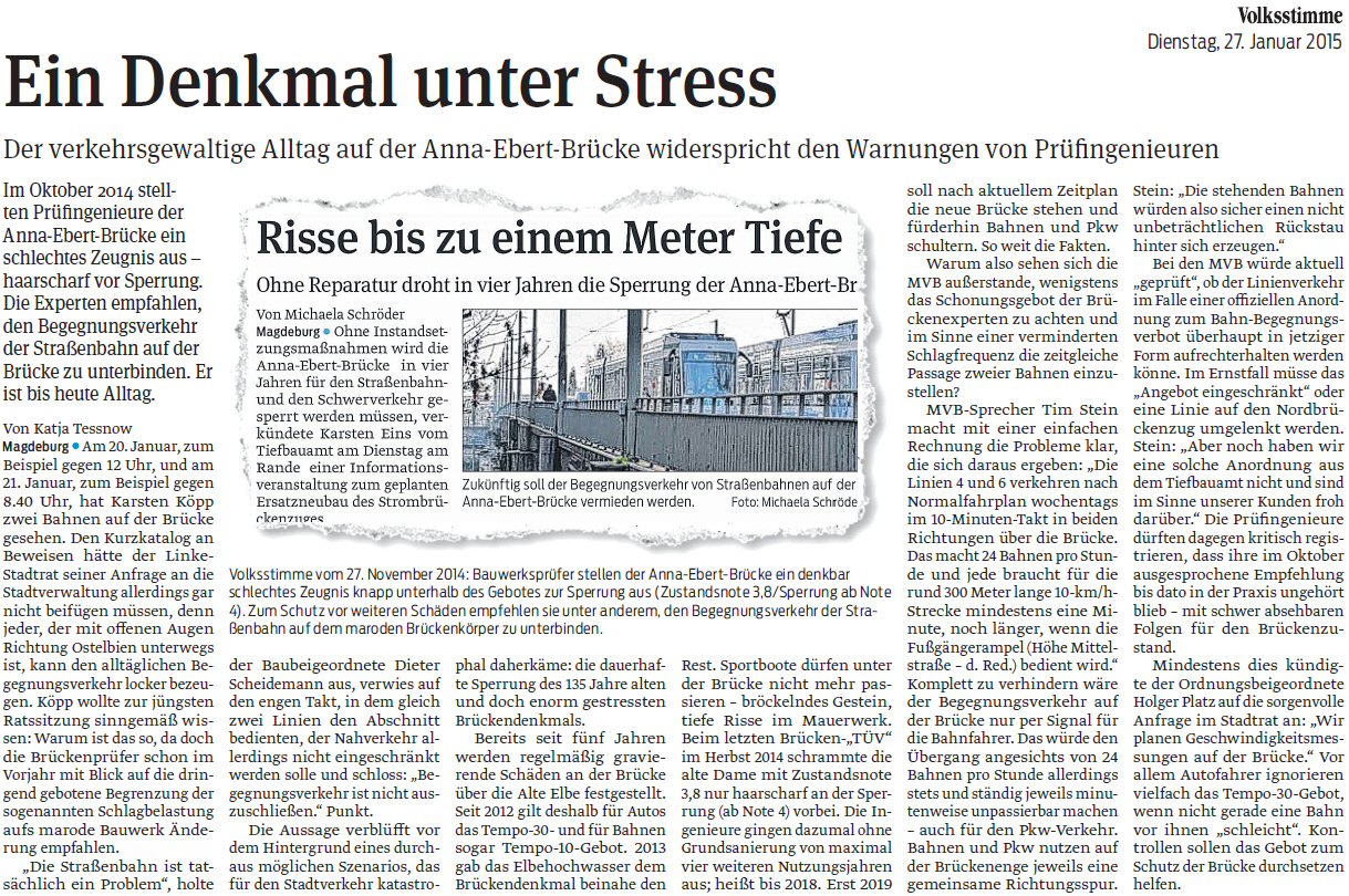 Volksstimme 27.01.2015 - Anna-Ebert-Brücke baufällig