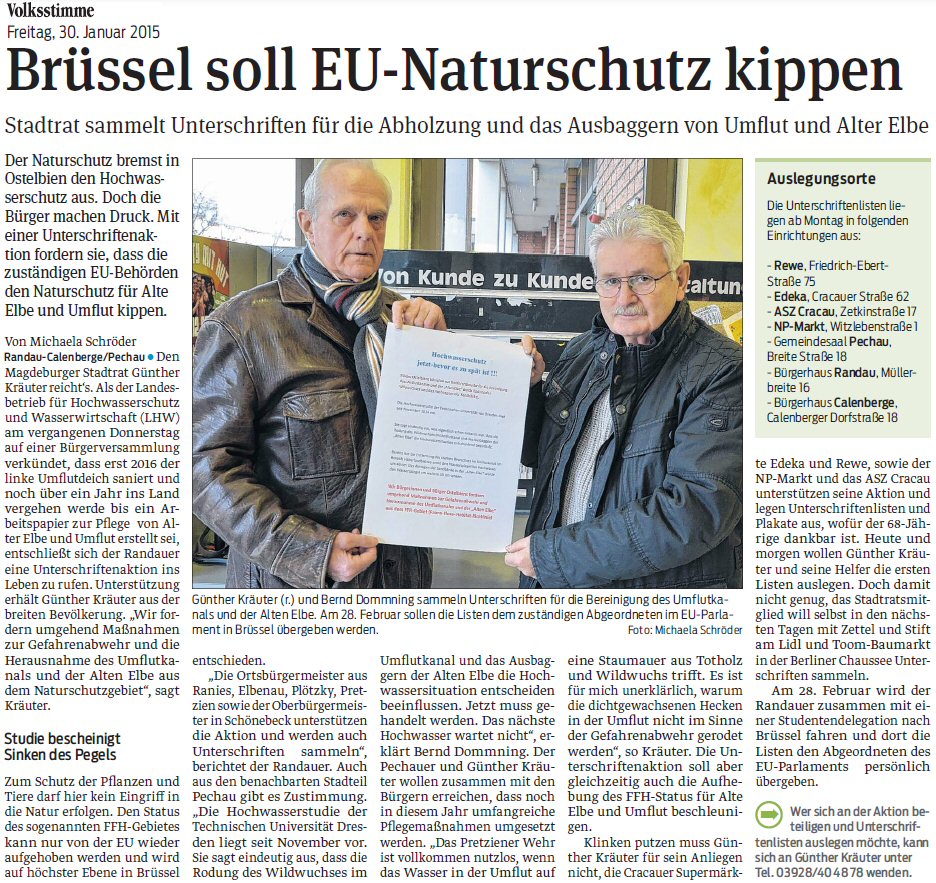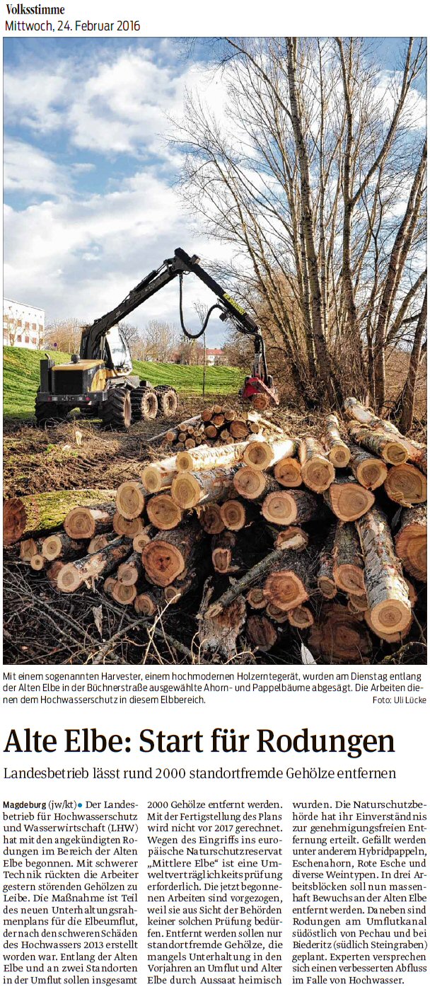 Volksstimme 21.11.2014 - Wildwuchs in Alter Elbe muss weg