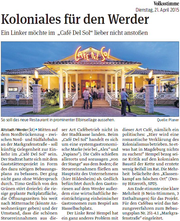 Volksstimme 06.09.2014 - Stadtrat: Rettungsaktion Linden scheitert