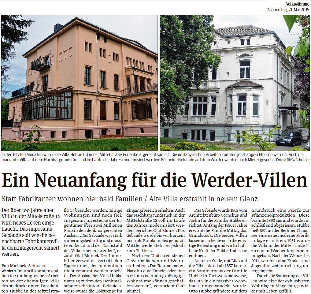 Volksstimme 17.10.2014 - Villa Huubbe wird Wohnhaus