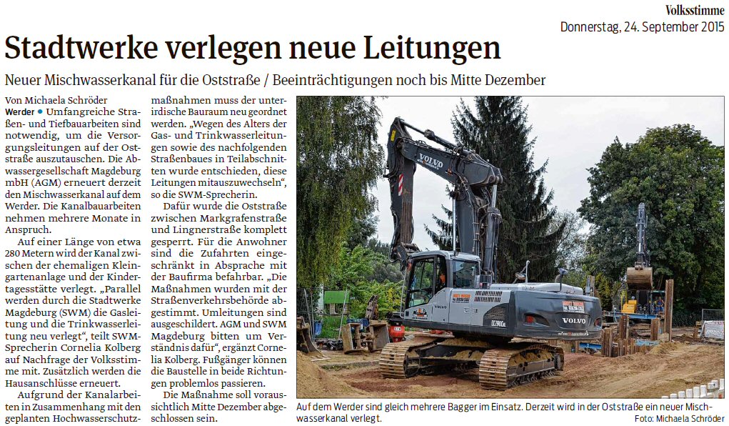 Volksstimme 07.10.2014 - Baustart Hochwasserschutzmauer Turmschanzenstraße