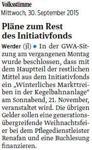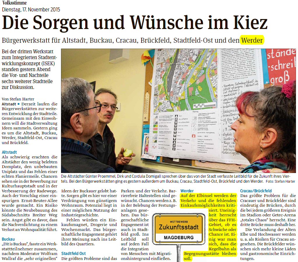 Volksstimme 07.12.2013 - Aktivitäten neuer Sprecherrat GWA Werder