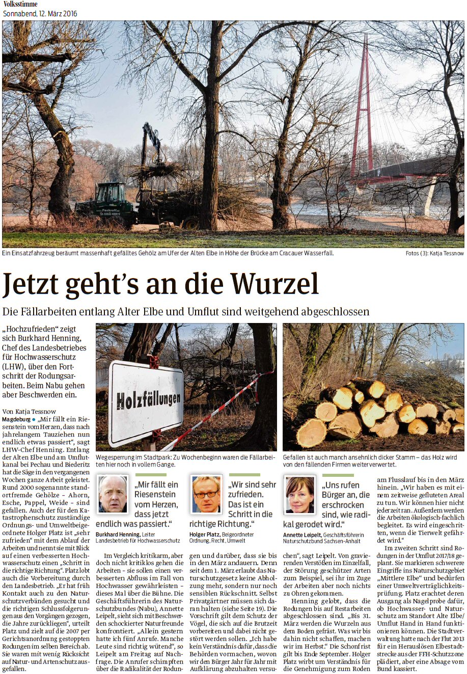 Volksstimme 06.03.2014 - Erste Baumfällungen Ufer Zollstraße