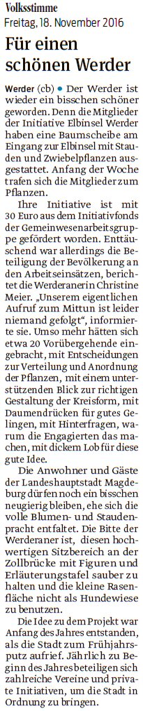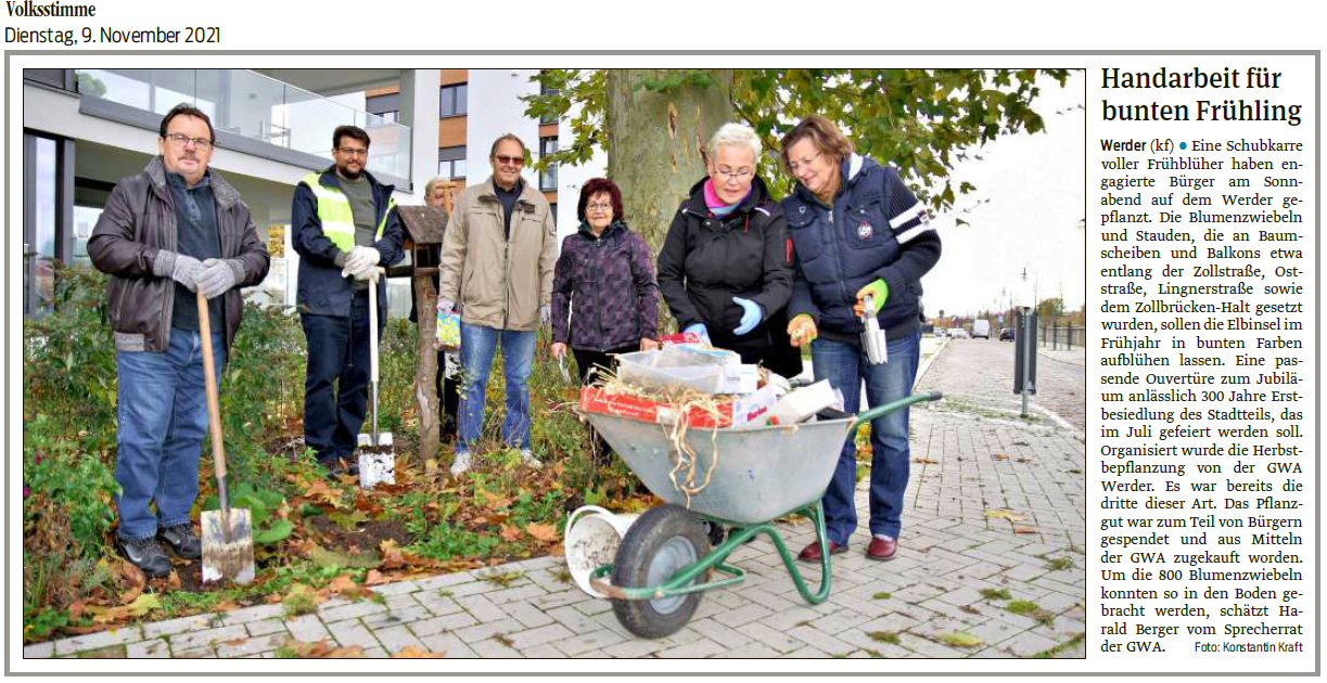Volksstimme 09.11.2021 - Bericht Hebstbepflanzung Werder am 06.11.2021