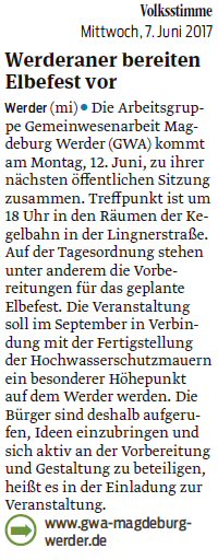 Volksstimme 17.05.2014 - Ankündigungen GWA-Termine