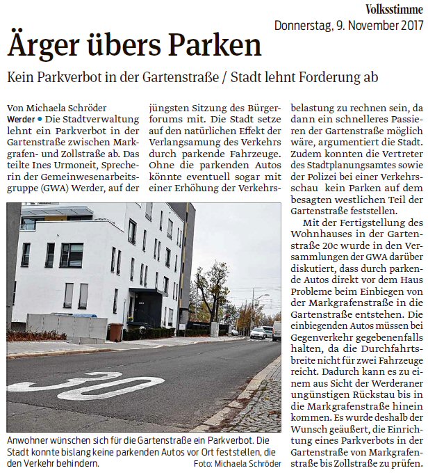Volksstimme 12.11.2022 - Bericht GWA-Versammlung Brückenweg