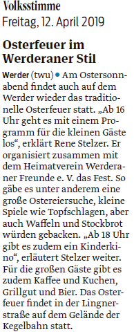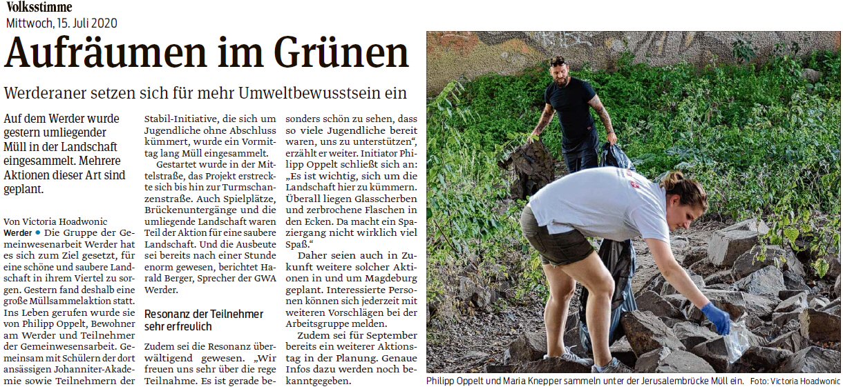 Volksstimme 12.04.2014 - Frühjahrsputz Ostelbien und auch auf dem Werder