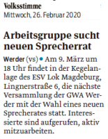 Volksstimme 10.02.2023 - Ankündigung GWA-Versammlung