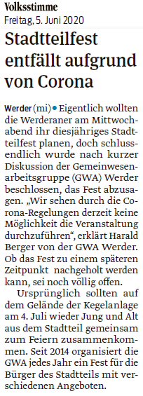Volksstimme 05.07.2023 - Bericht Stadtteilfest Werder