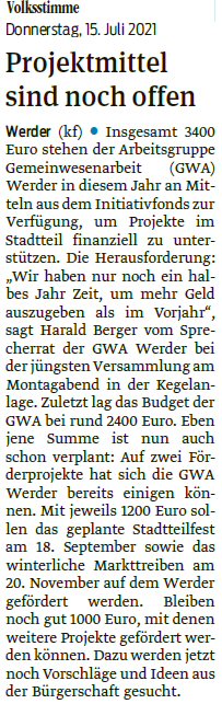 Volksstimme 15.09.2021 - Ankündigung Stadtteilfest Werder am 18.09.2021