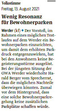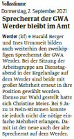 Volksstimme 24.09.2024 - Kandidaturaufruf für Sprecherratswahl GWA Werder