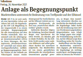 Volksstimme 26.11.2021 - Bericht zum Winterlichen Markttreiben am 20.11.2021
