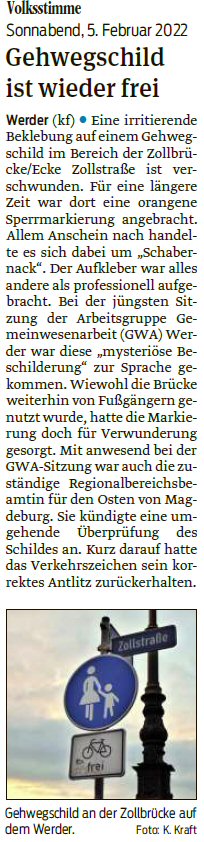 Volksstimme 05.02.2022 - Fußweg Zollbrücke