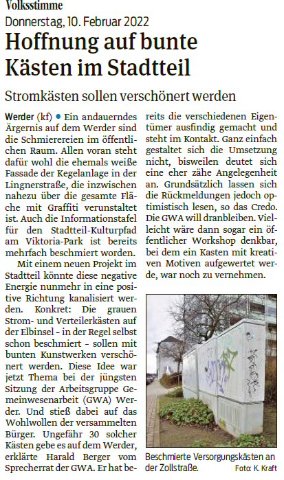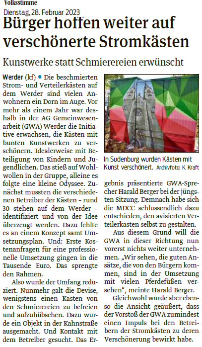 Volksstimme 28.02.2023 - Stromkästengestaltung auf dem Werder