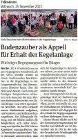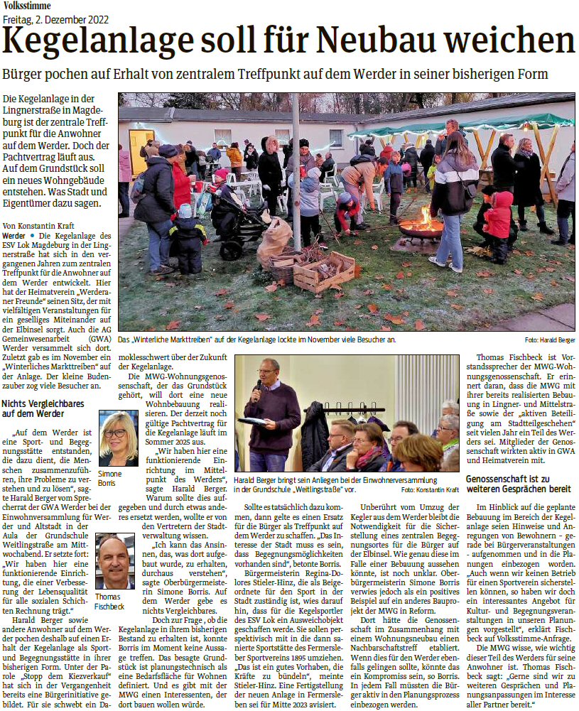 Volksstimme 22.12.2022 - Zukunft Kegelanlage