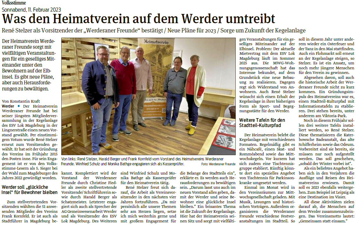Volksstimme 11.02.2023 - Vorstandswahl WerderanerFreunde e.V.