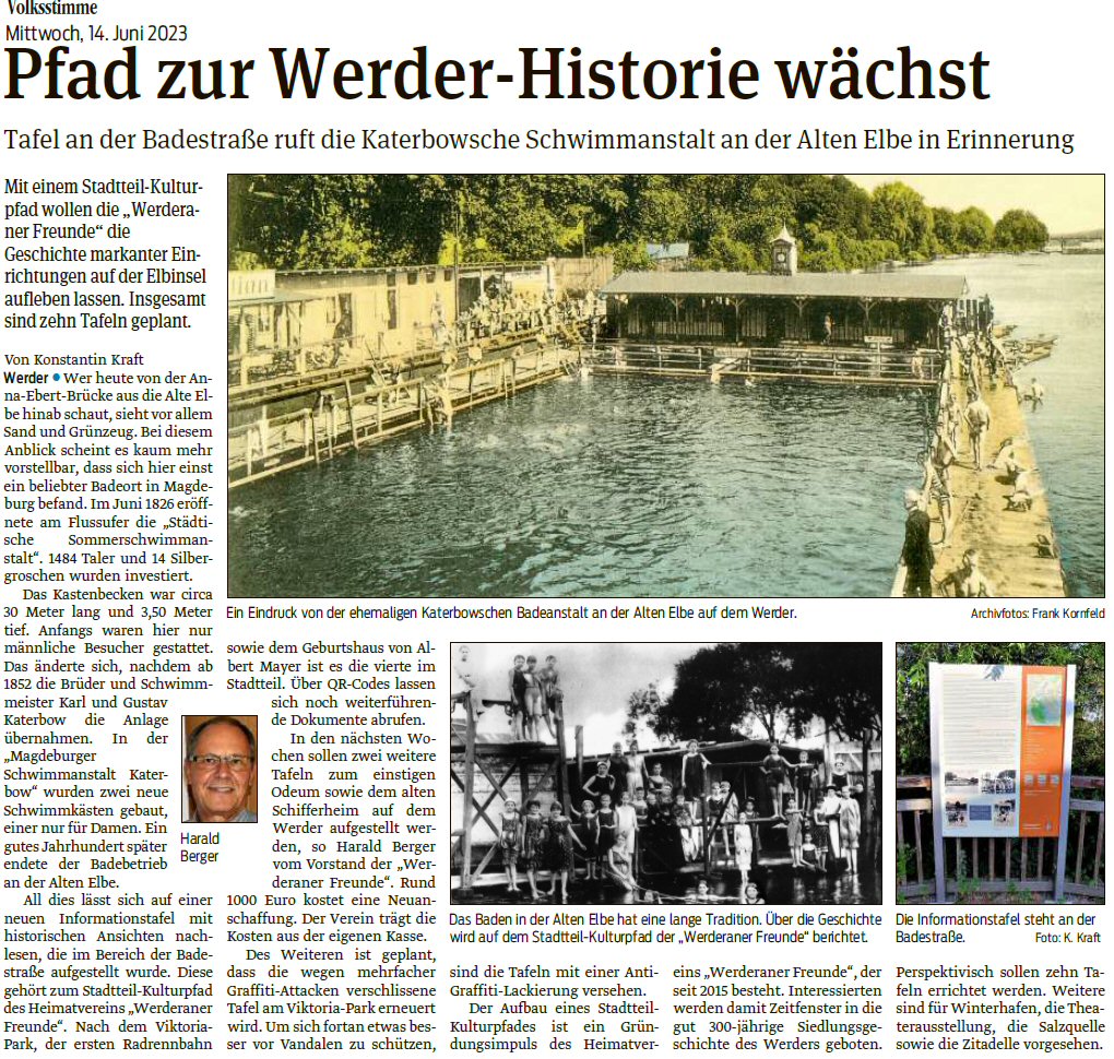 Volksstimme 14.06.2023 - Stadtteilkulturpfad Werder