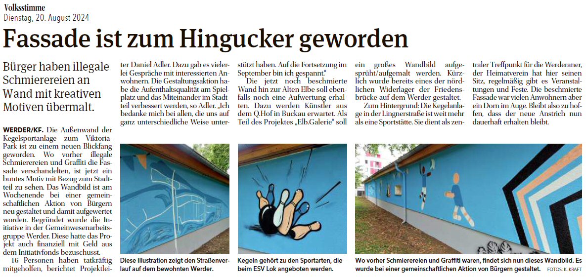 Volksstimme 15.06.2024 - Projekt Außenwandgestaltung Kegelanlage