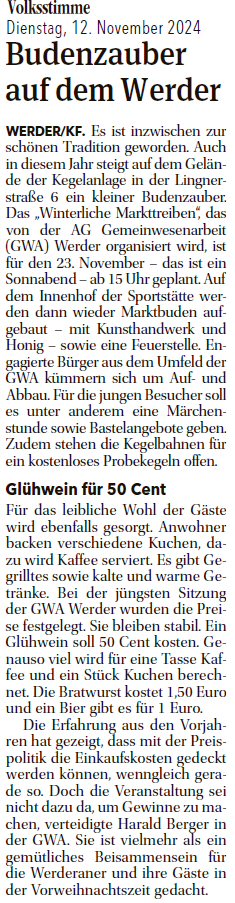 Volksstimme 02.11.2024 - Ankündigung GWA-Versammlung am 04.11.2024