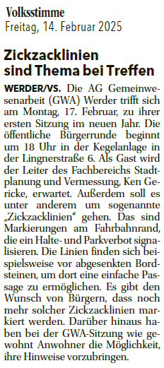 Volksstimme 14.02.2025 - Nochmalige Ankündigung GWA-Versammlung am 17.02.2025