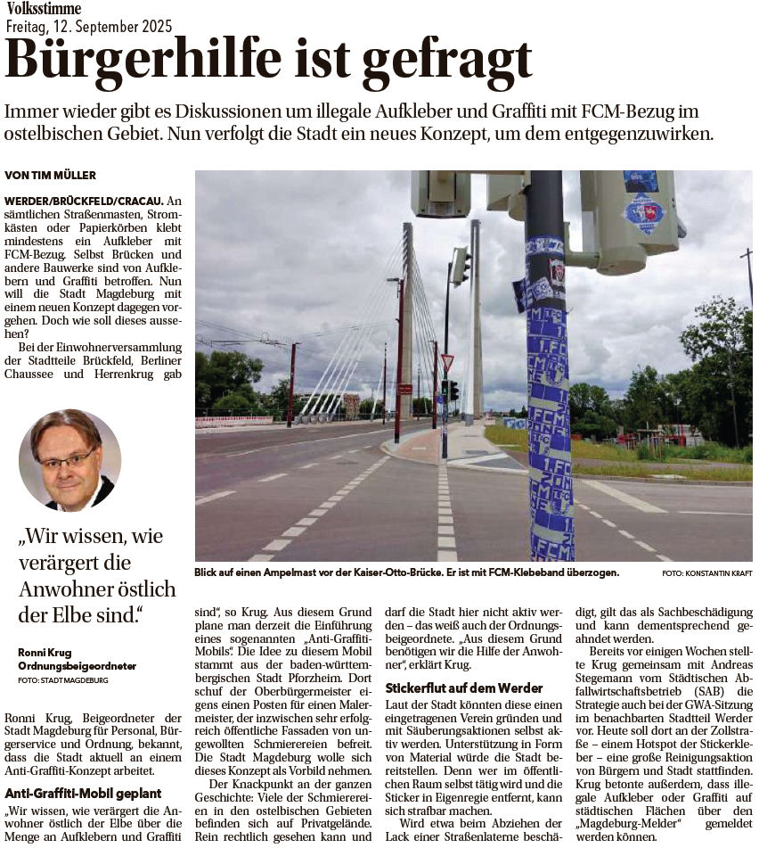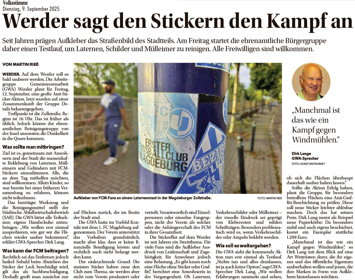 Volksstimme 09.09.2025 - Stickerentfernung