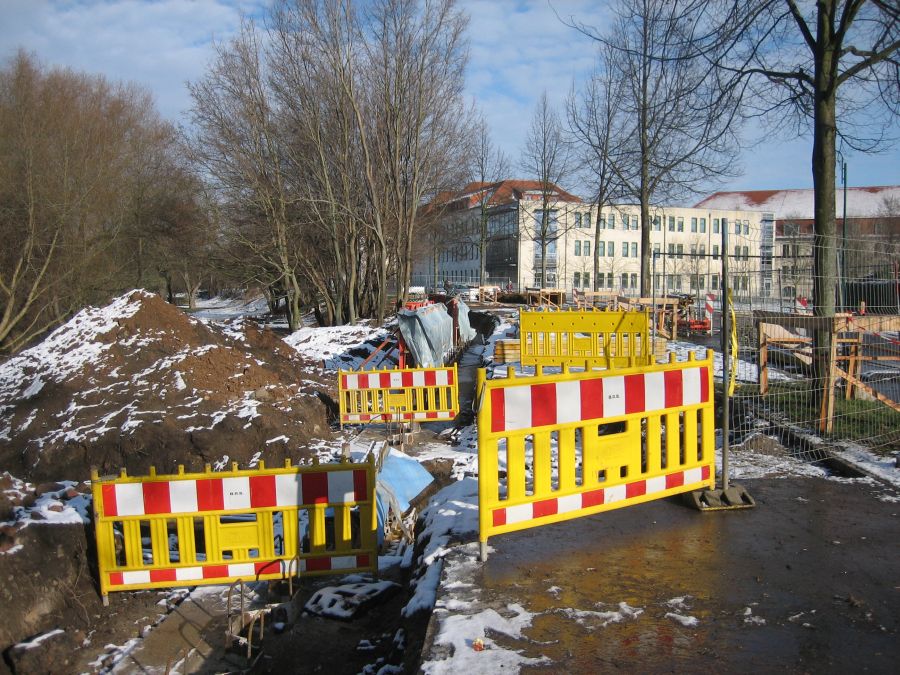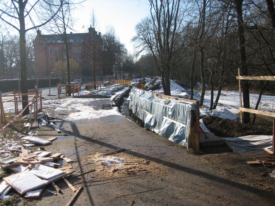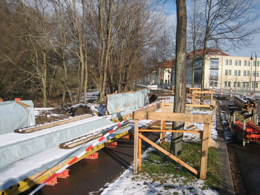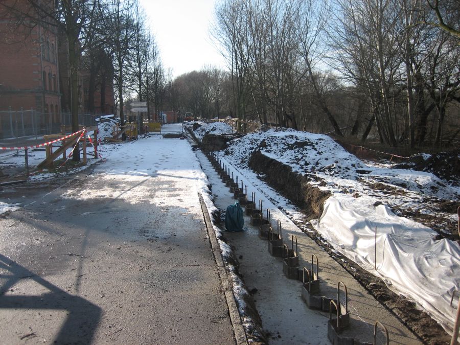 Baufortschritt Hochwasserschutzmauer Turmschanzenstraße