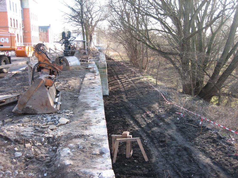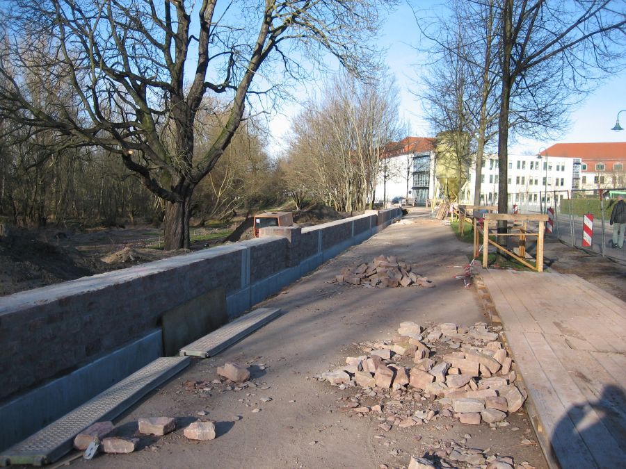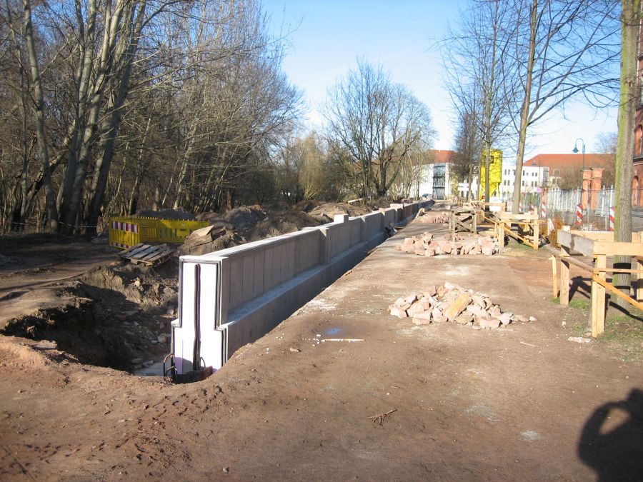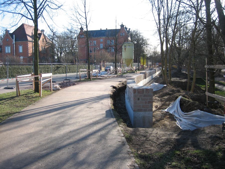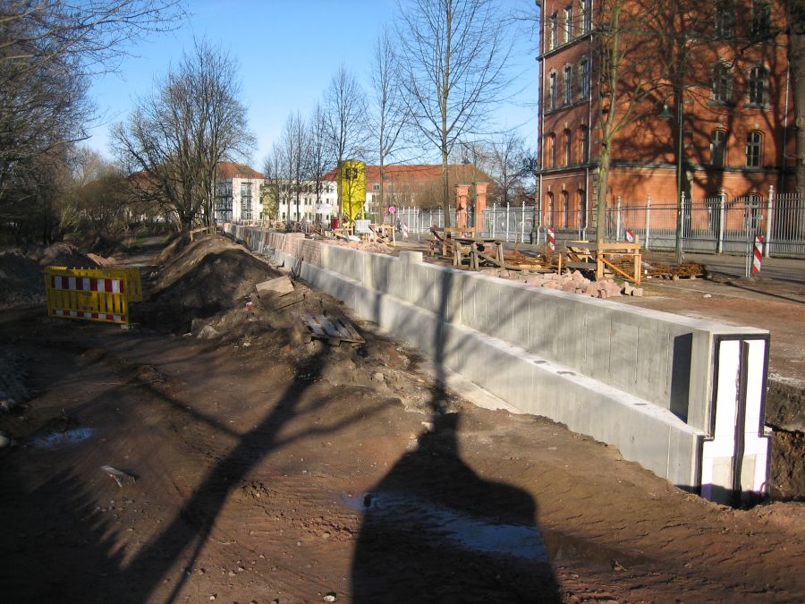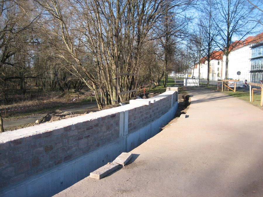 Baufortschritt Hochwasserschutzmauer Turmschanzenstraße