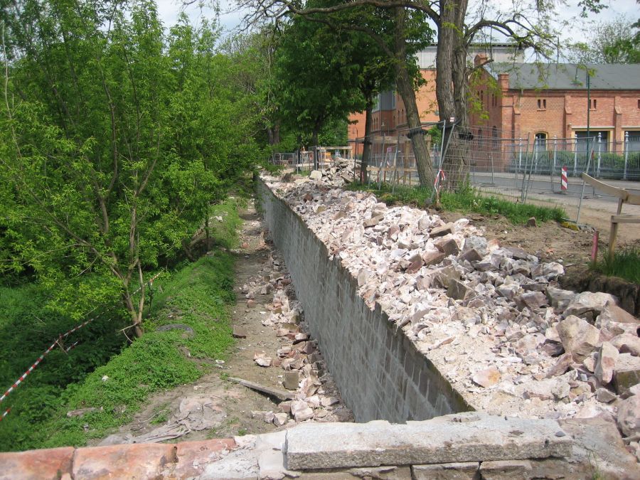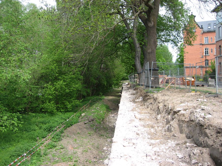 Baufortschritt Hochwasserschutzmauer Turmschanzenstraße